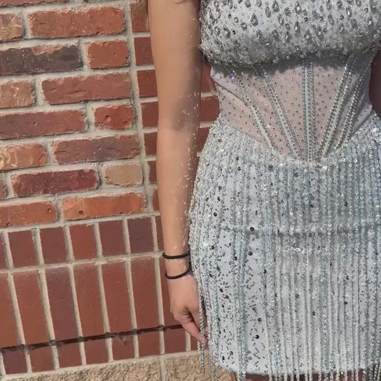 Silver Sequin Fitted Corset Dress